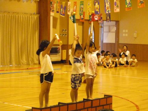 大好きなお祭りの曲に合わせ元気に踊りました。ポーズも決まったよ!